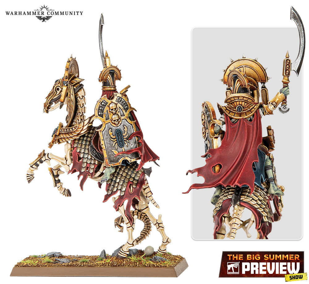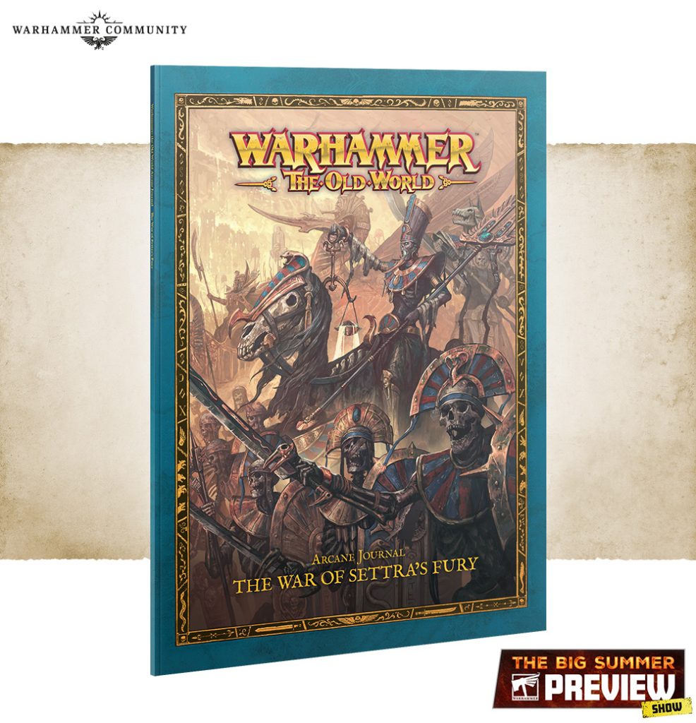 Este libro nos narrará el trasfondo de esta invasión y cómo ciertos aliados inesperados tratan de parar a Settra el Imperecedero. En el libro podremos encontrar contenido para las partidas, reglas para las monturas de los personajes, hechizos del culto mortuorio y varios ejércitos de infamia, incluyendo a matadores enanos y príncipes fronterizos. También tendremos reglas para jugar partidas a pequeña escala de Warhammer: The Old World ¿Tenemos de nuevo ante nosotros esas divertidas reglas de escaramuzas?